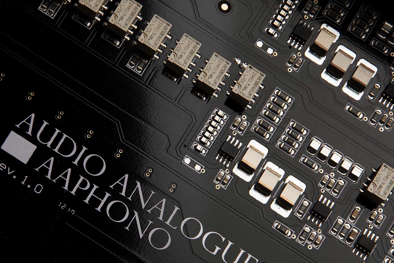 Sekcja zasilania składa się z trzech transformatorów toroidalnych, osobno dla sekcji cyfrowej oraz lewej i prawej sekcji analogowej. Wszystkie elementy pasywne zostały starannie dobrane. W sekcji korekcji krzywej RIAA wykorzystano wyłącznie kondensatory foliowe o niskiej tolerancji. AAphono jest bardzo wszechstronny i prosty w użyciu. Dla wkładek MM możliwe jest ustawienie pojemności wejściowej oraz oporności, a dla wkładek MC oporności wejściowej. Zmiany ustawień mogą być dokonane w łatwy sposób, po prostu poprzez naciśnięcie odpowiedniego przycisku tuż pod przednim panelem, bez otwierania obudowy czy użycia wielu różnych przełączników. Wybrana konfiguracja zostanie zapamiętana także wtedy, gdy urządzenie zostanie wyłączone lub odłączone od zasilania.